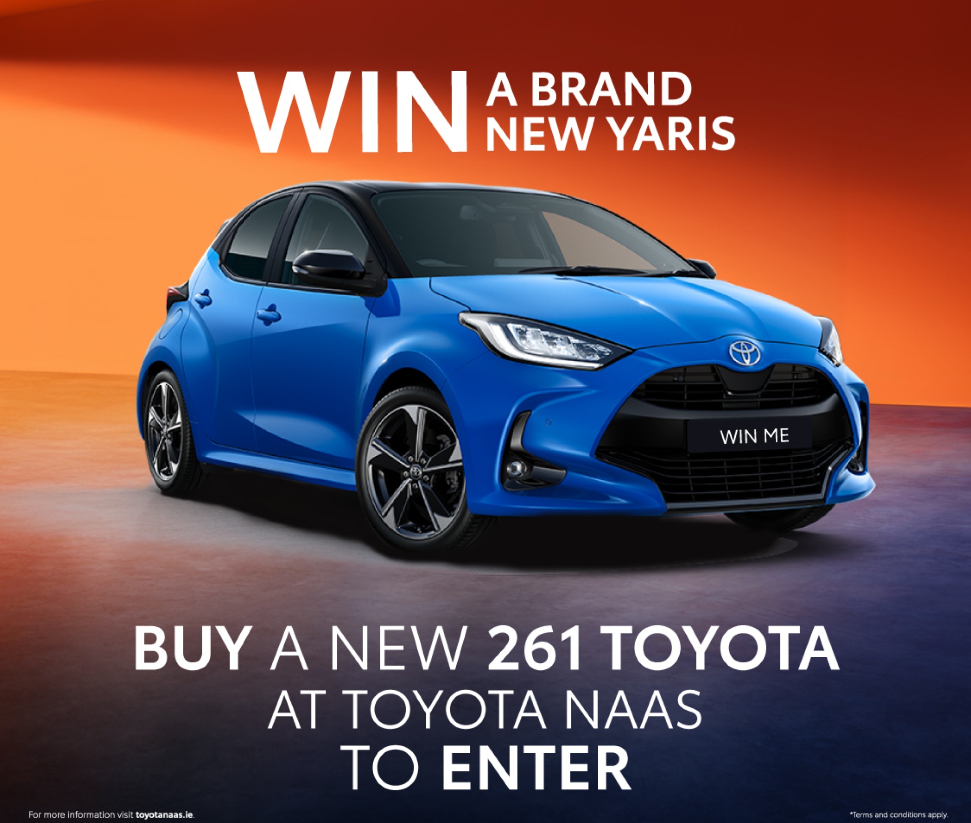 Here’s how: YOU MUST BUY A NEW 261 TOYOTA AT TOYOTA NAAS TO ENTER THE DRAW.